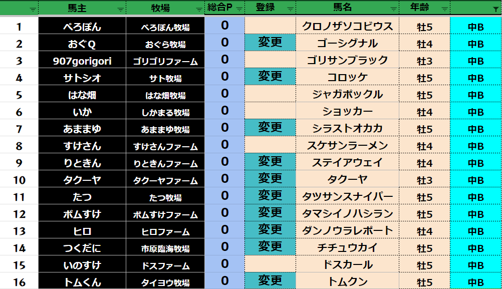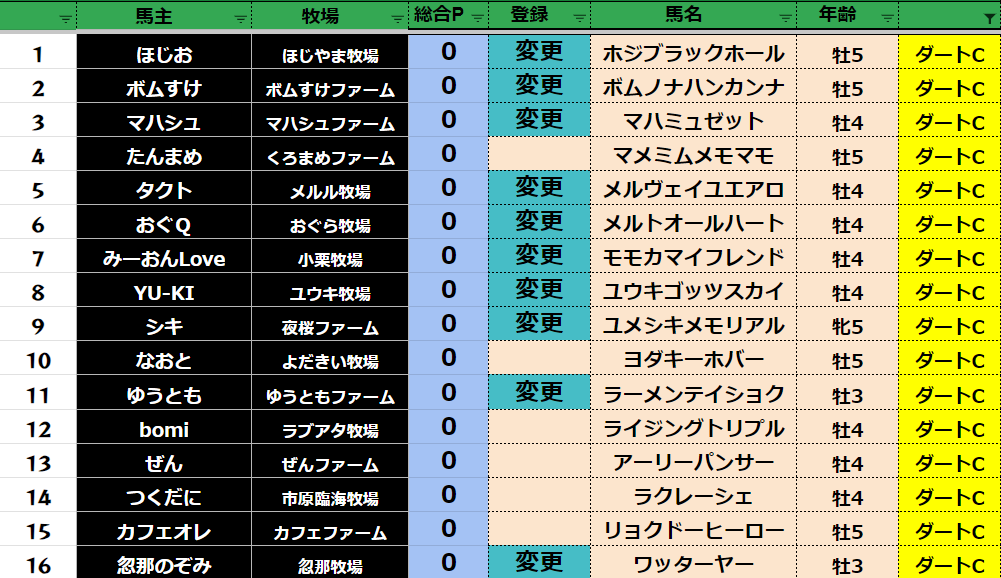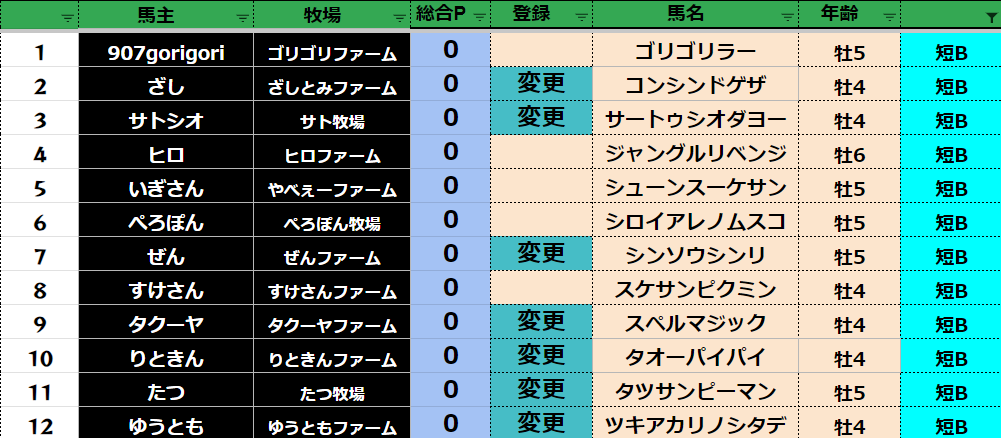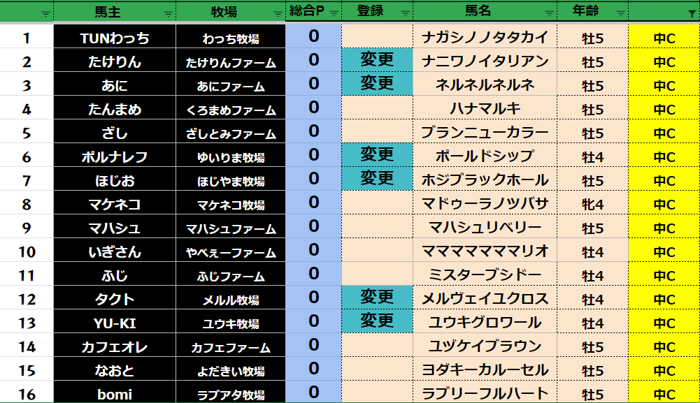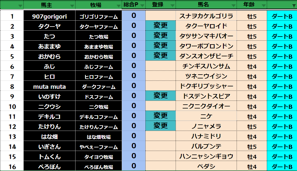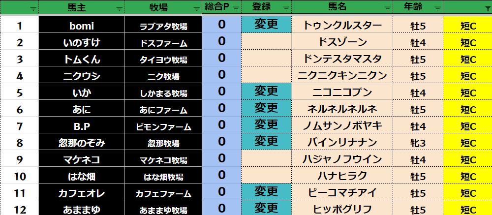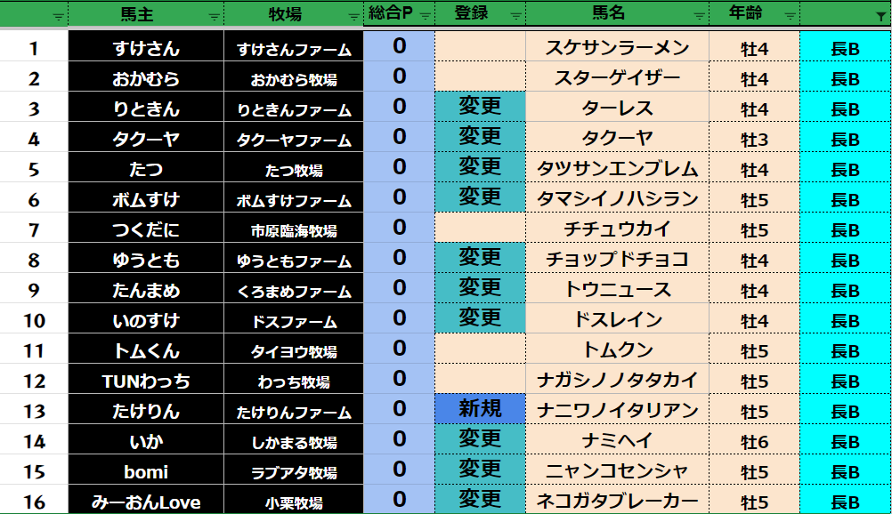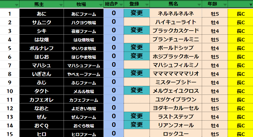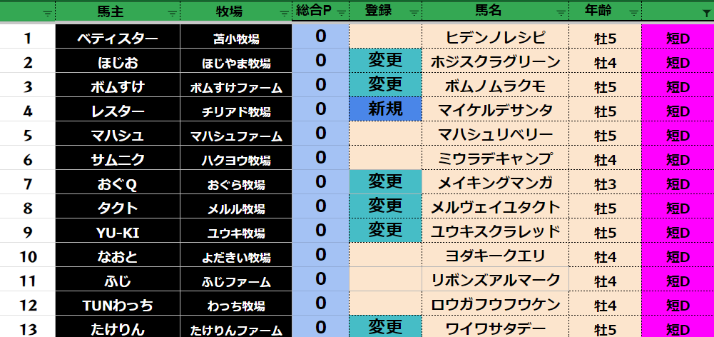 登録フォームから変更する馬だけ