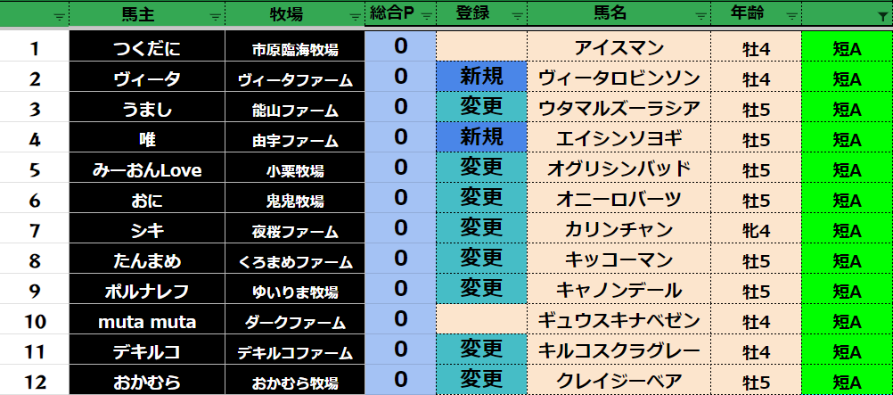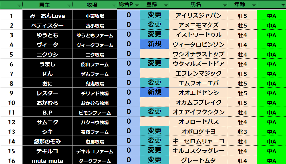 新しい馬と差し替えの場合は必ず
