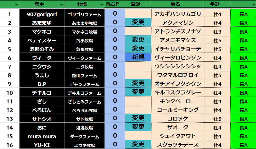 皆さんが登録してくださった馬を