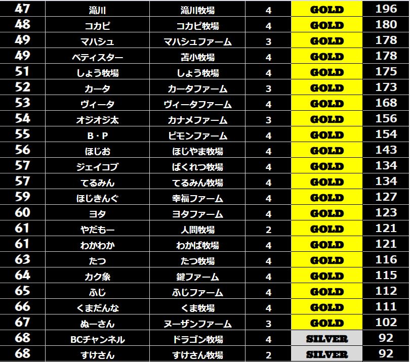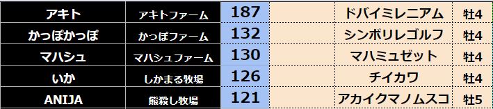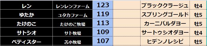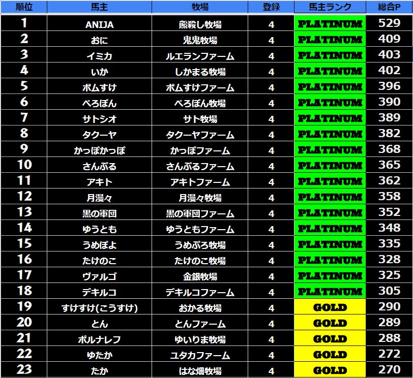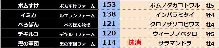 ゲーム上の印はサトフネが印を持っていってます!次点にサクラブルコンコン、ピクトコヒキマス。
