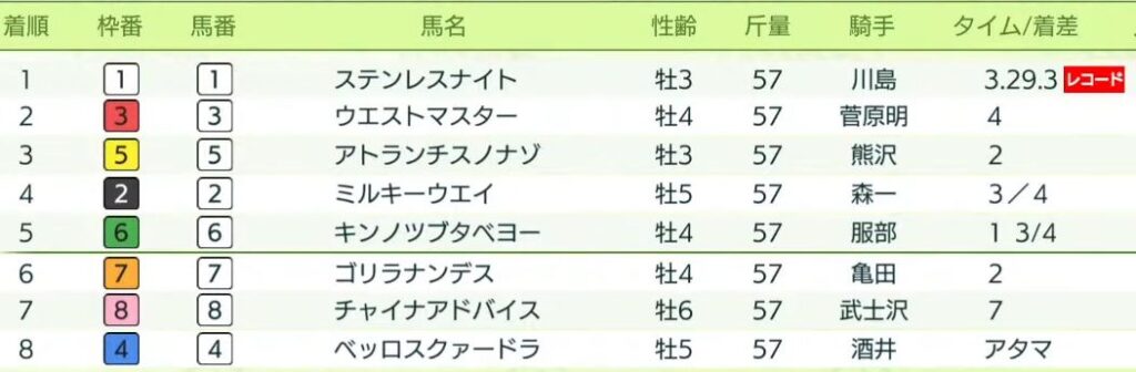 ステンレスナイトは5番人気の7.6倍だった。てるすぽではノーマークだった・・・