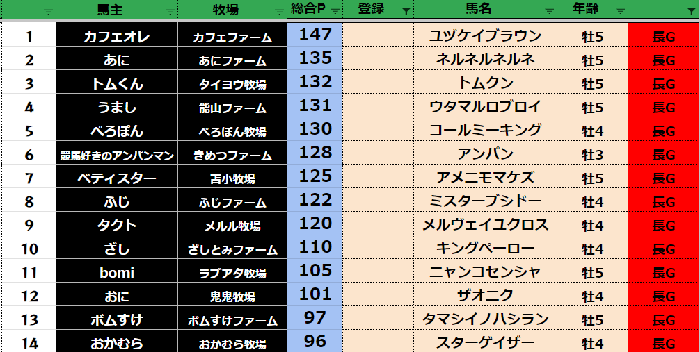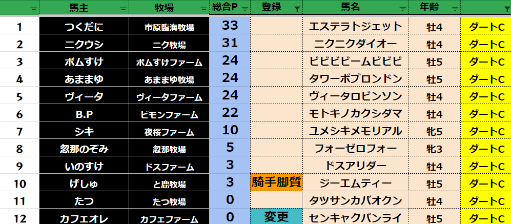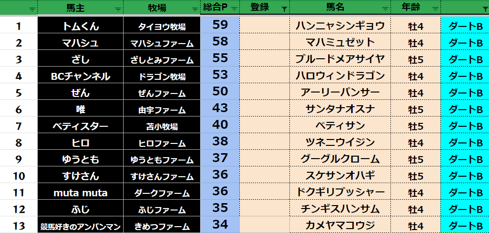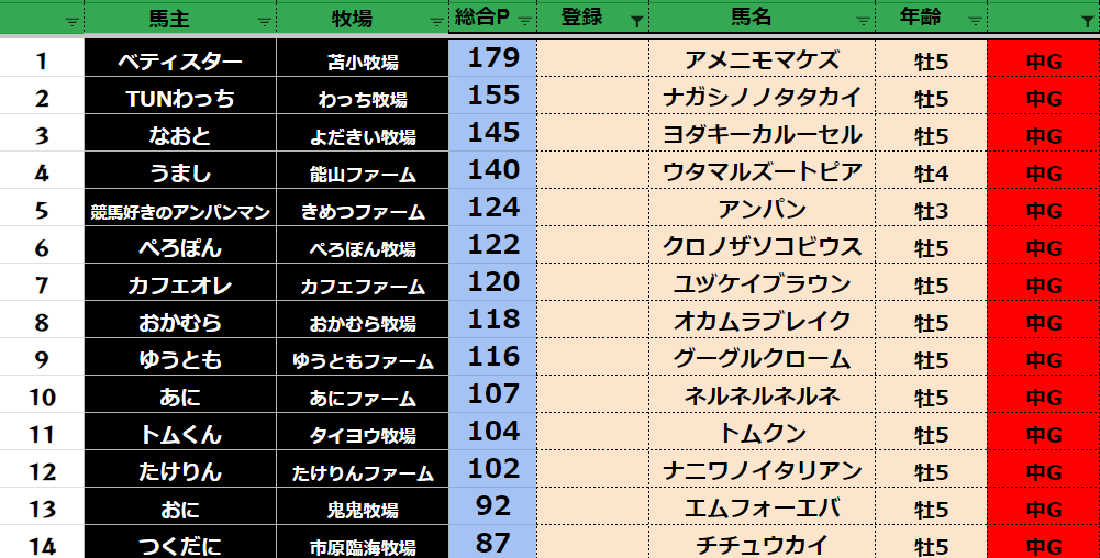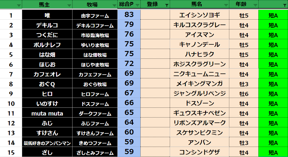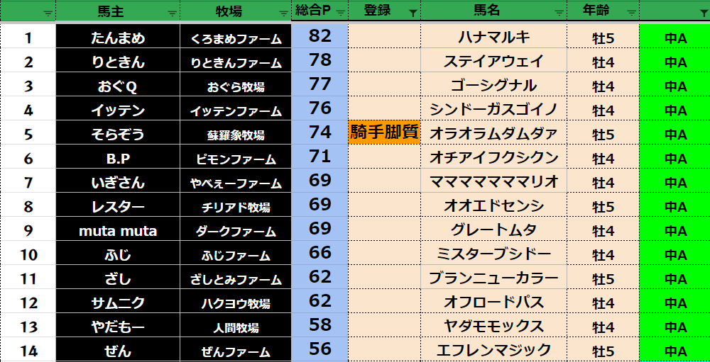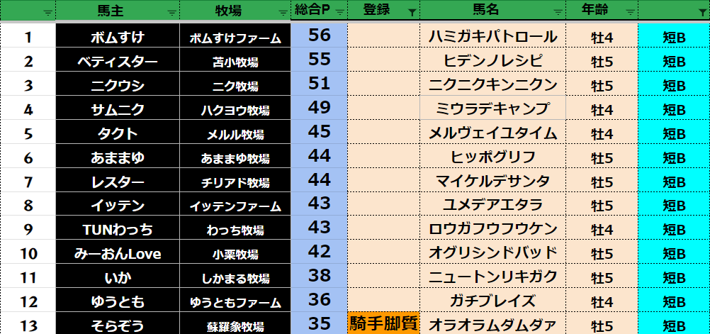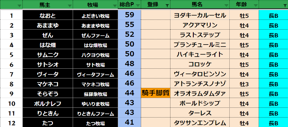 ダビスタ 【ダビスタSwitch】suke3BC season3 !! 6月1週目 結果発表!! さて6月1週目の結果発表なんですが その前にお詫びがございます・・・ 5月の最終結果がシートの不具合により ポイントがずれておりました。 今...