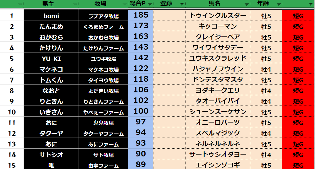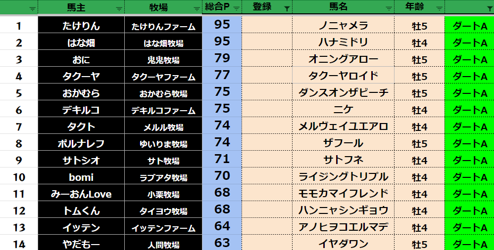 ダビスタ 【ダビスタSwitch】suke3BC season5!! 5月4週目 結果発表!! さあ 5月も終わりですね! 先週の結果の方まいります! 【ダート結果】 【ダートランキング】 【短距離結果】 【短距離ランキング】 【中距...