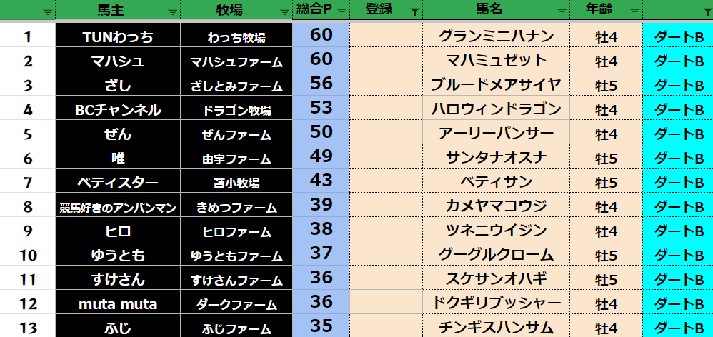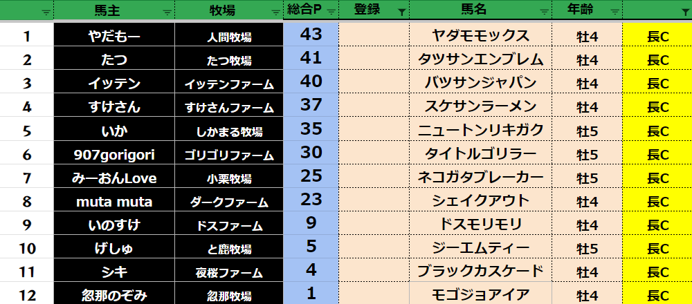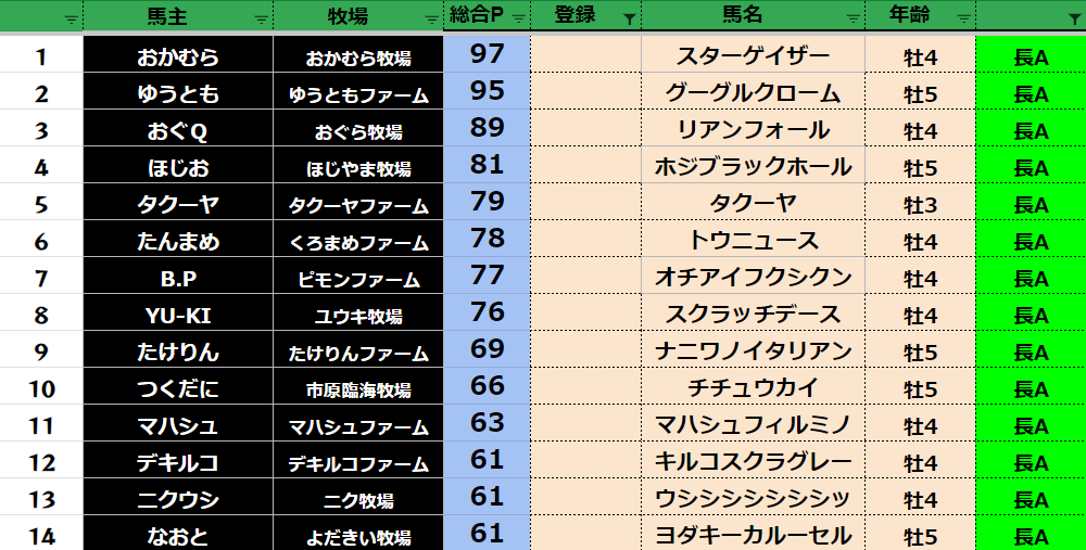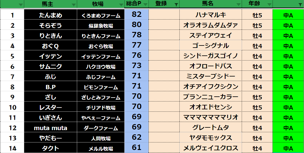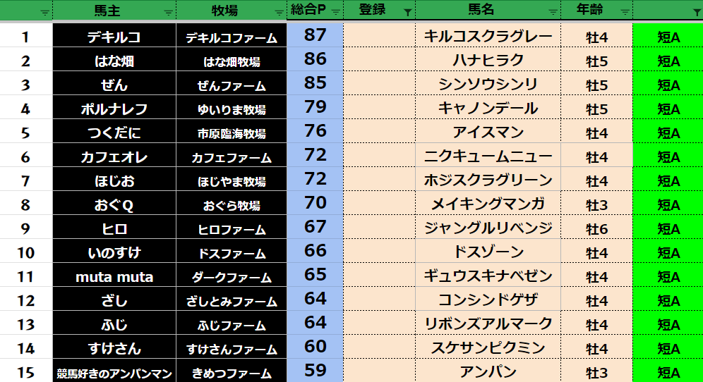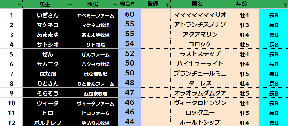 ダビスタ 【ダビスタSwitch】suke3BC season4 6月1週目 クラス振り分け確定! さぁ今日から6月BCスタートです! よろしくお願いします! そしてダビクエ予想も先週から リセットになりました! 参加馬主:57名 全登録馬...