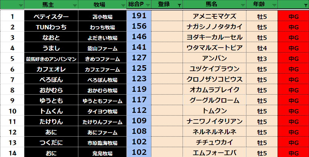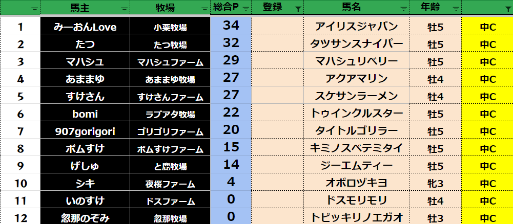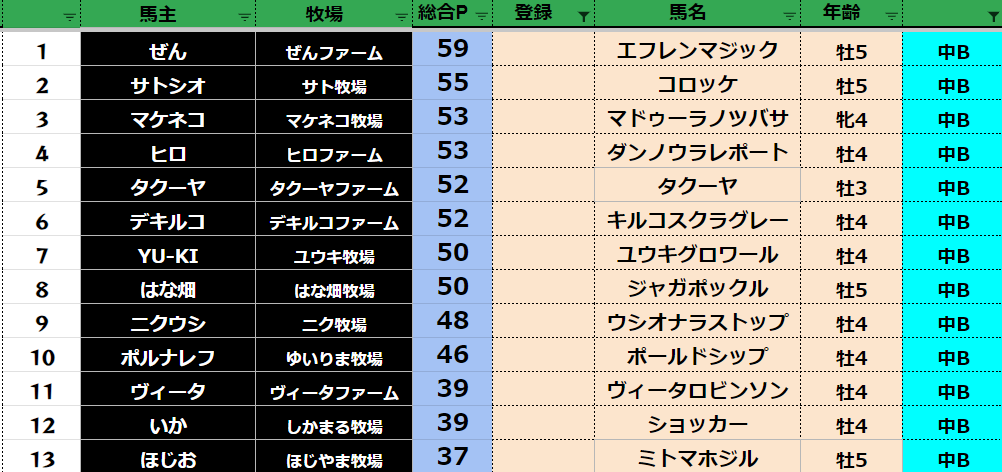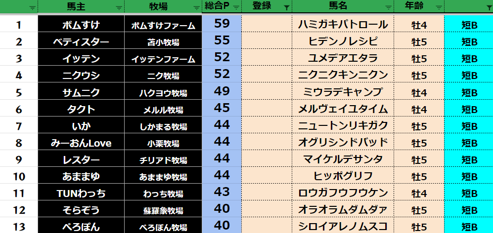 ダビスタ 【ダビスタSwitch】suke3BC season4 8月3週目 クラス振り分け確定! さぁ残すところあと2週となりました! 張り切っていきましょう! 参加馬主:57名 全登録馬:219頭 ダート:54頭 短距離:57頭 中距離...