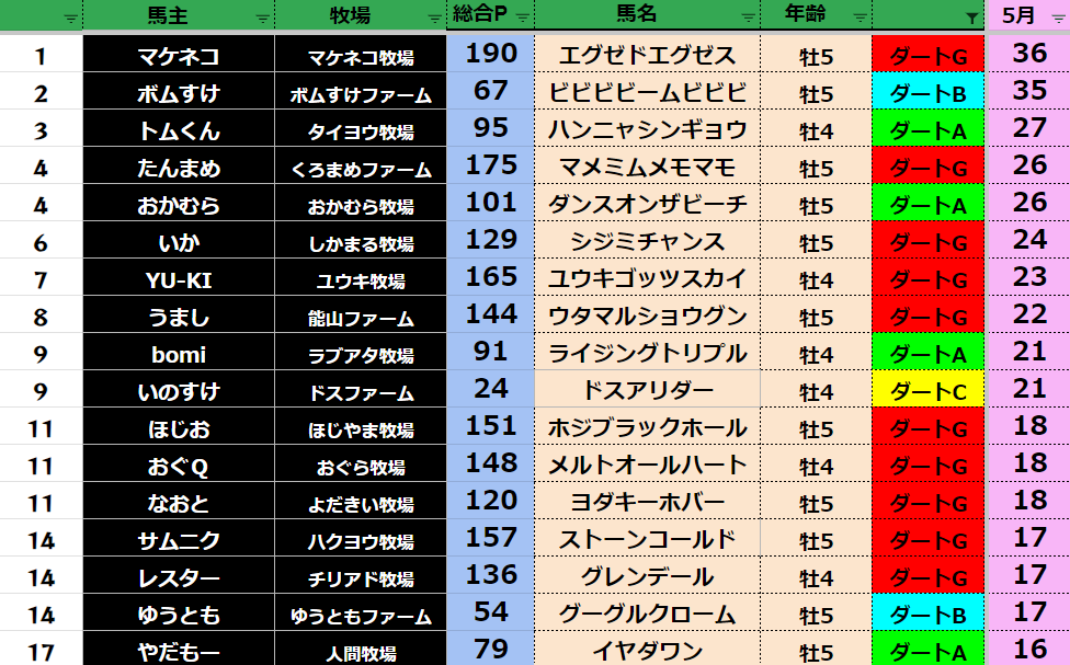 【ダート5月ランキング】
