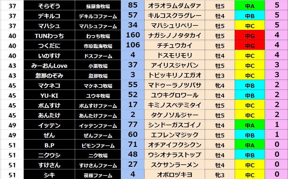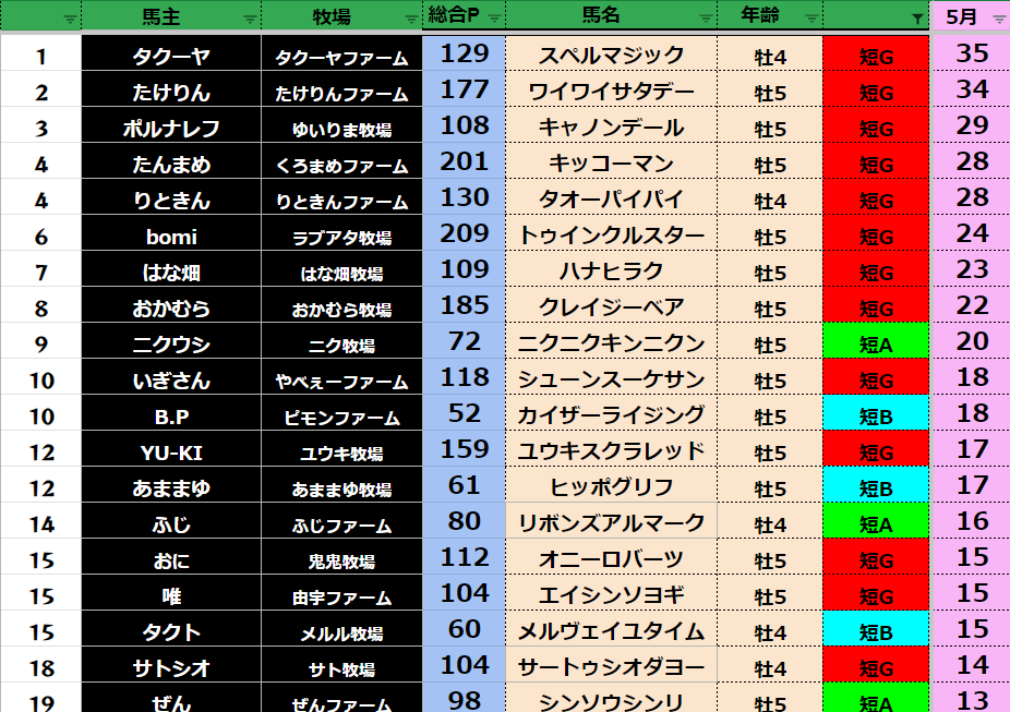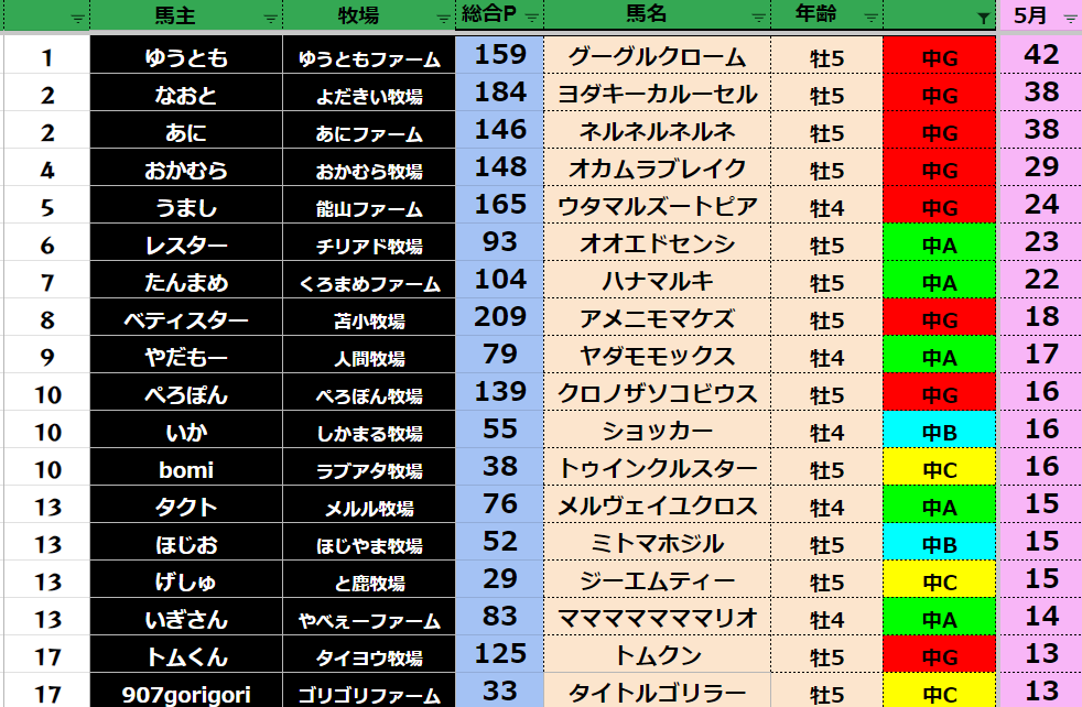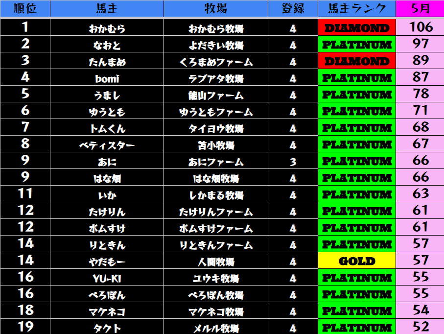 【中距離5月ランキング】
