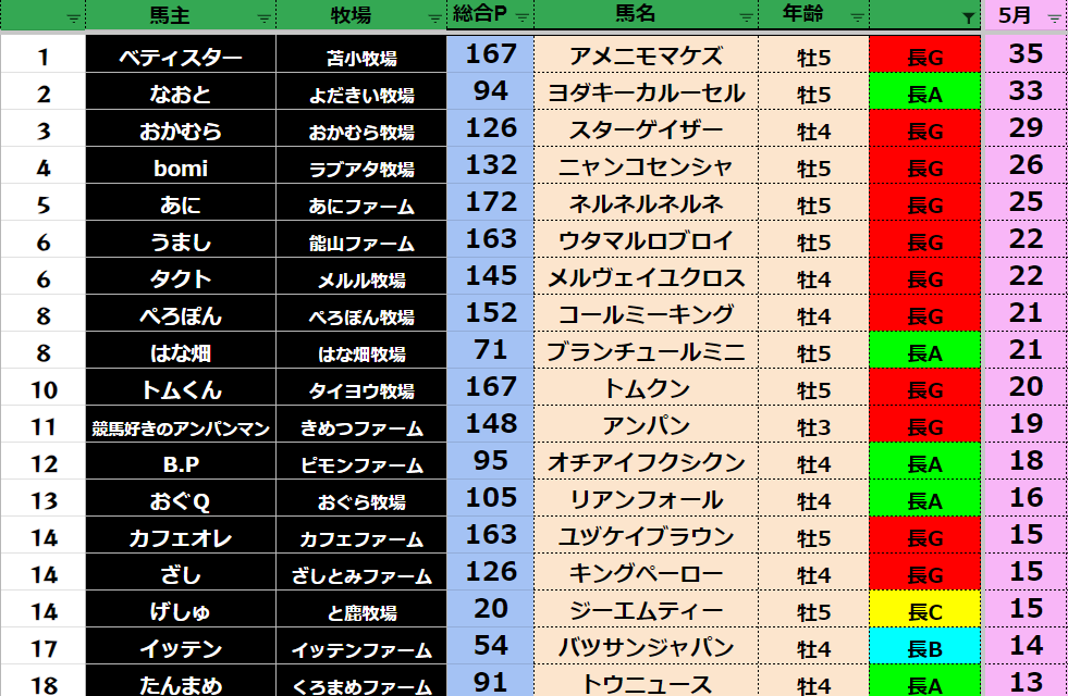 【5月馬主ランキング】
