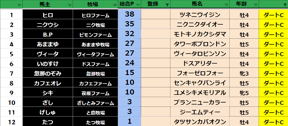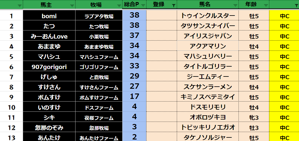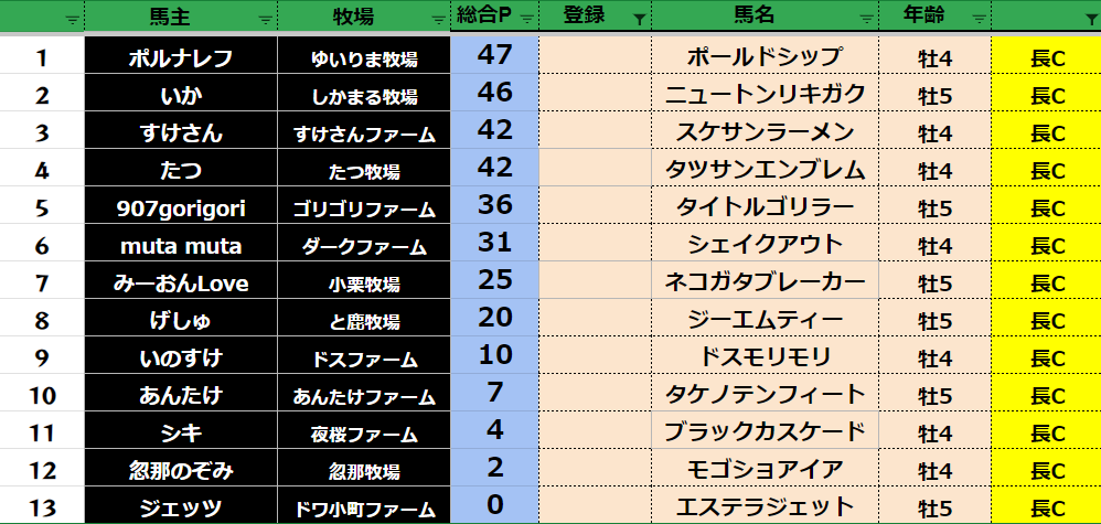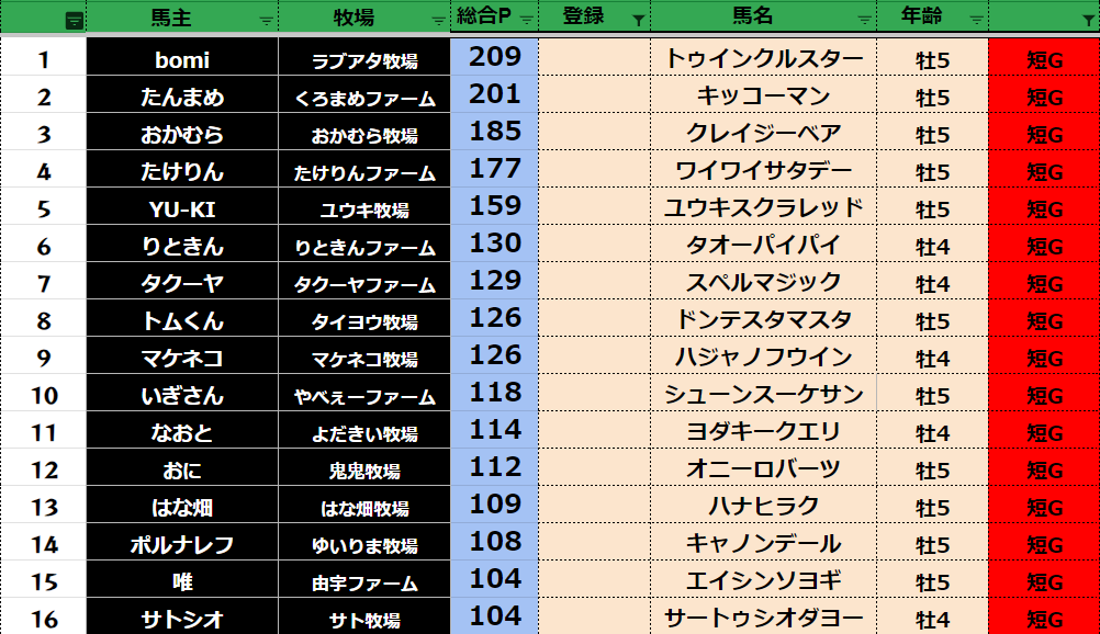 参加馬主:57名 全登録馬:218頭