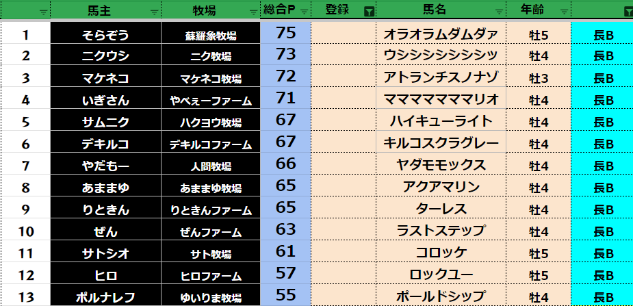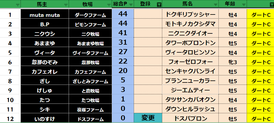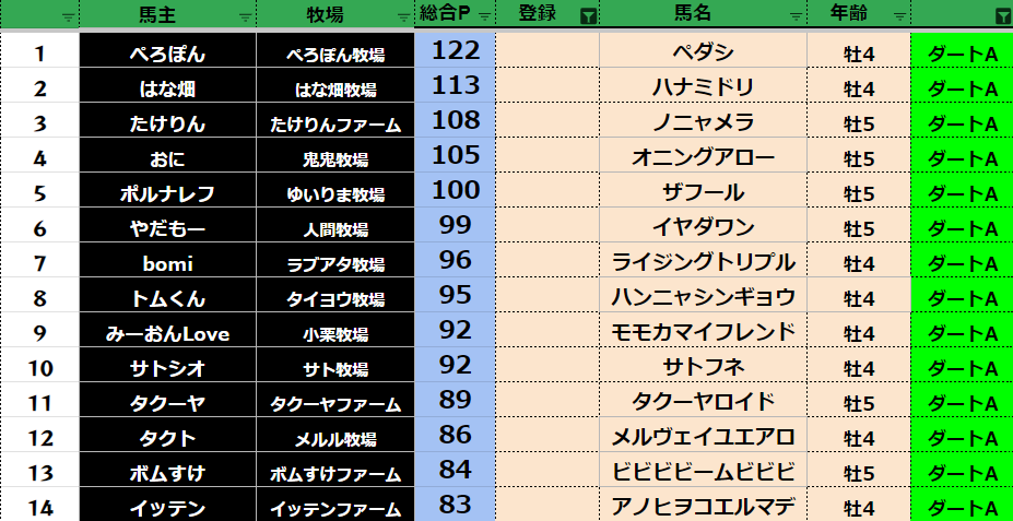 ダビスタ 【ダビスタSwitch】suke3BC season4 1月2週目 クラス振り分け確定! さて今週の振り分けになります! 今週もはりきっていきましょう! 参加馬主:54名 全登録馬:209頭 ダート:52頭 短距離:54頭 中距離...