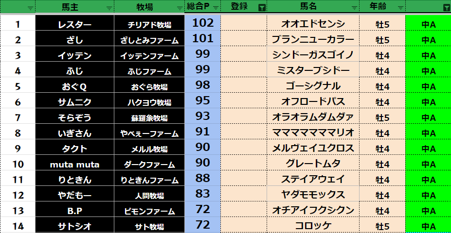 ダビスタ 【ダビスタSwitch】suke3BC season5 2月1週目 クラス振り分け確定! 皆さん川柳の投稿ありがとうございました! 18名のエントリーでした! 思いついたけど、応募締めきっちゃったぁという方は XのDMで送ってくだ...