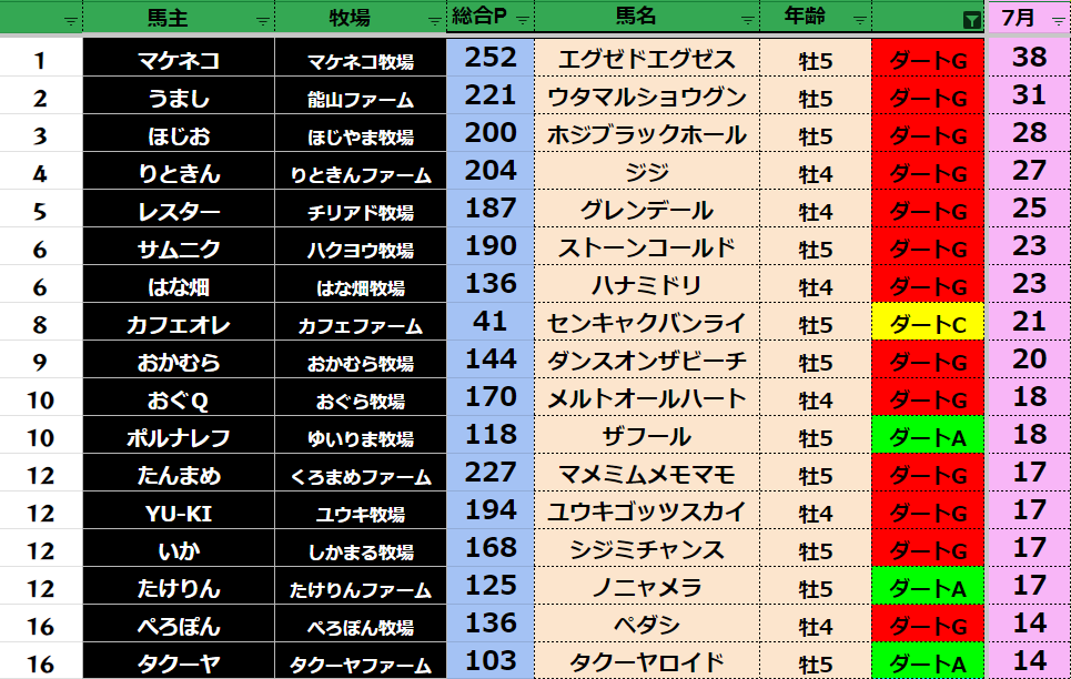 【ダート7月ランキング】