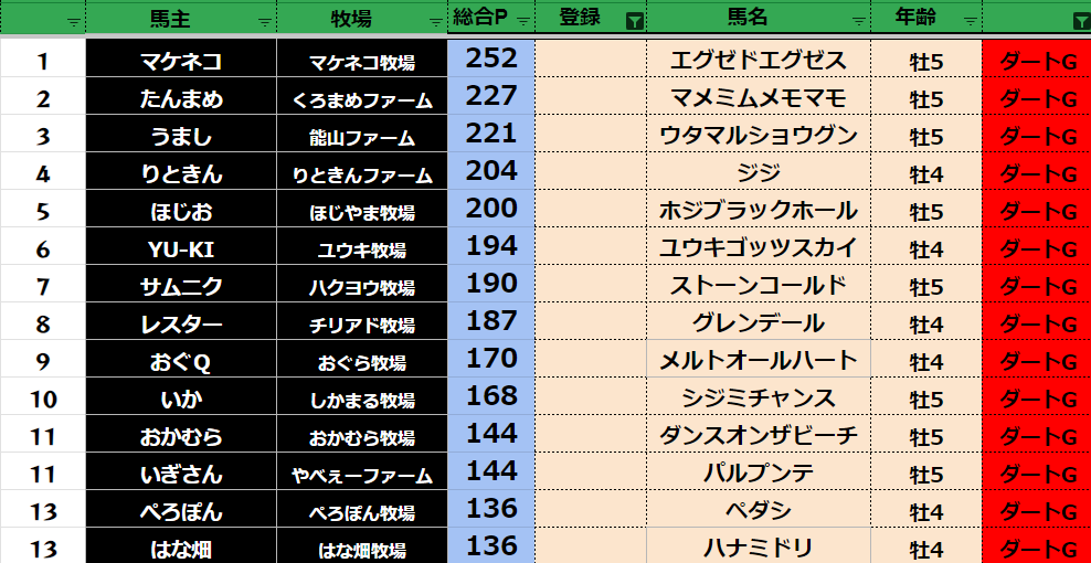 【ダートランキング】