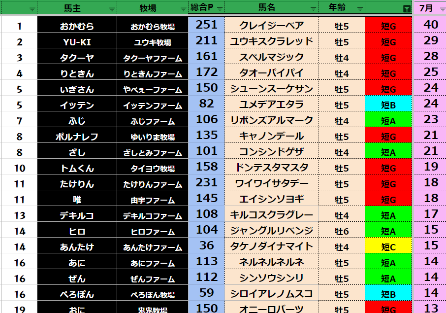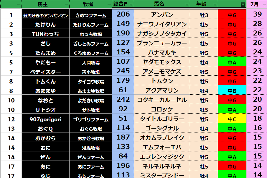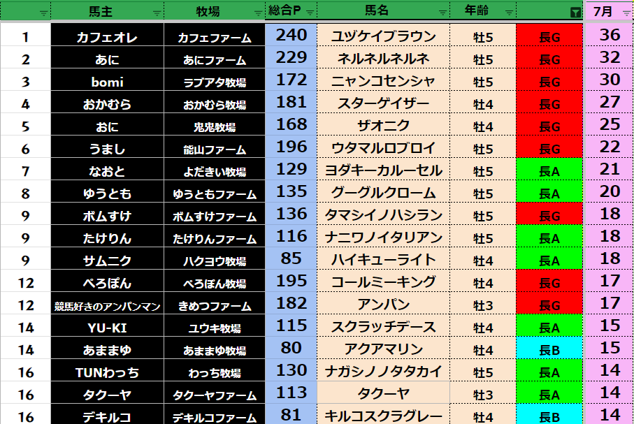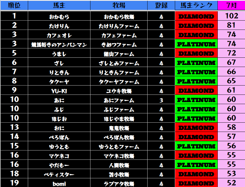 それでは7月の王者は誰だ!