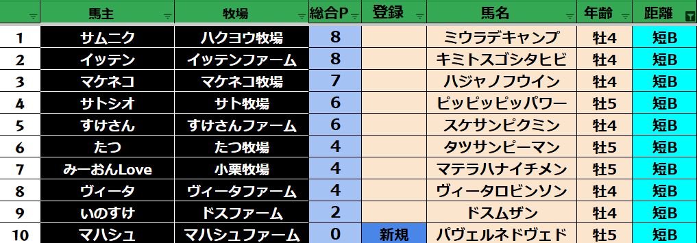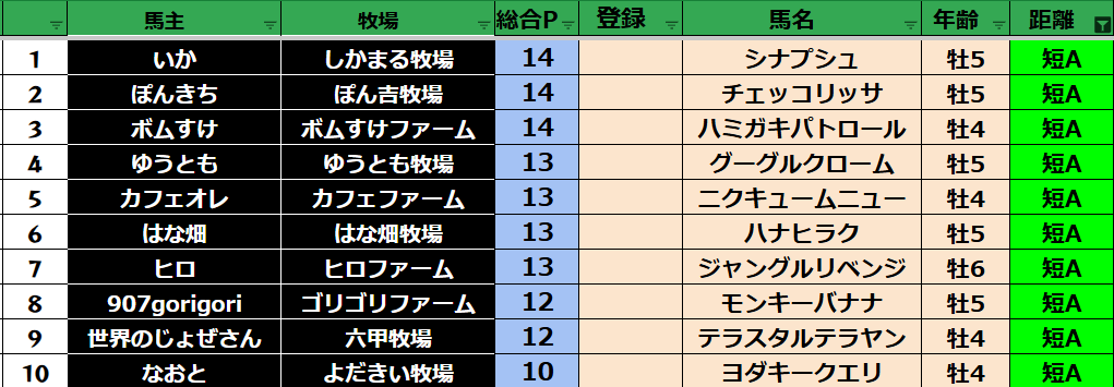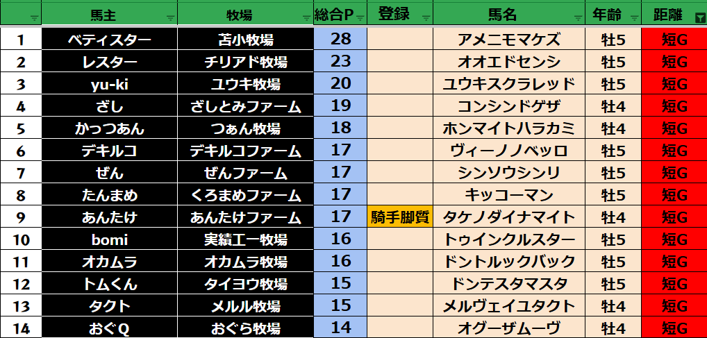 短距離:34頭