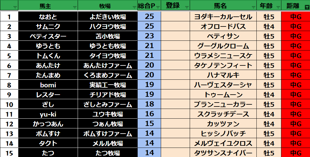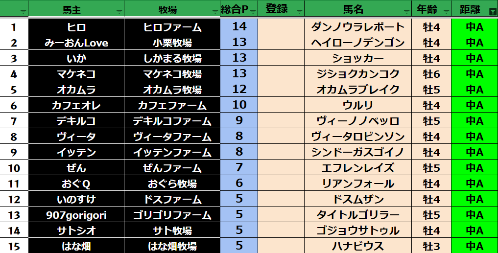 中距離:30頭