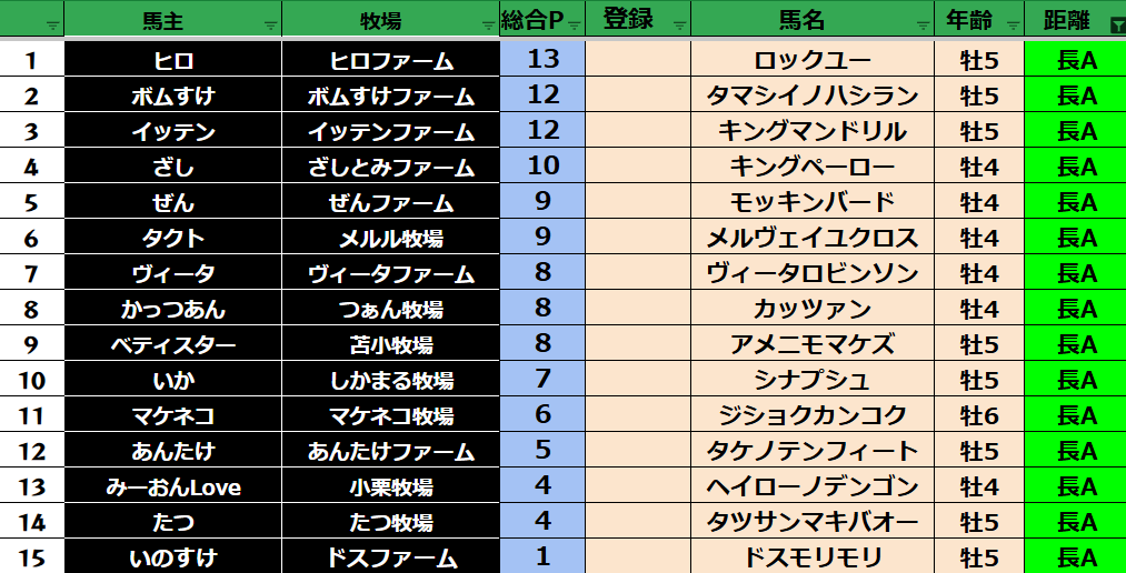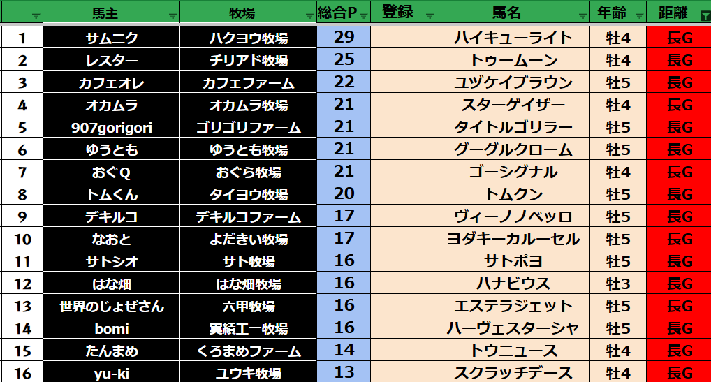 長距離:31頭