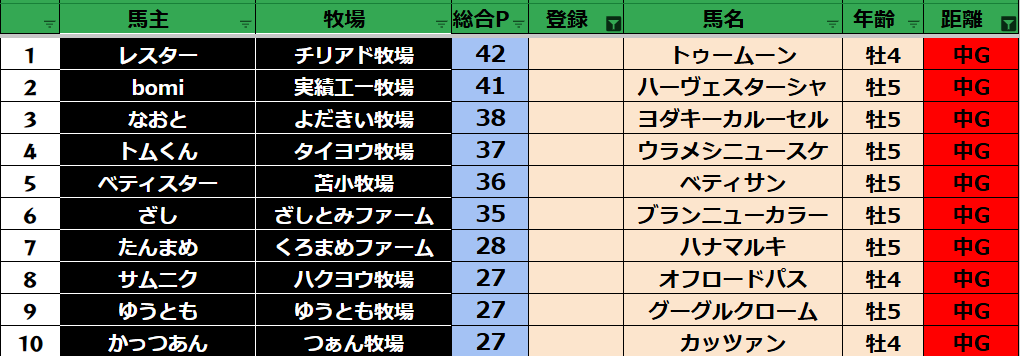中距離:29頭