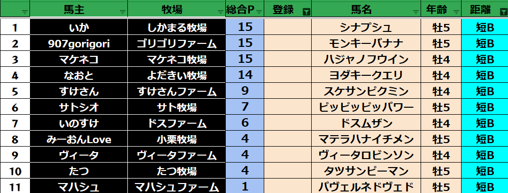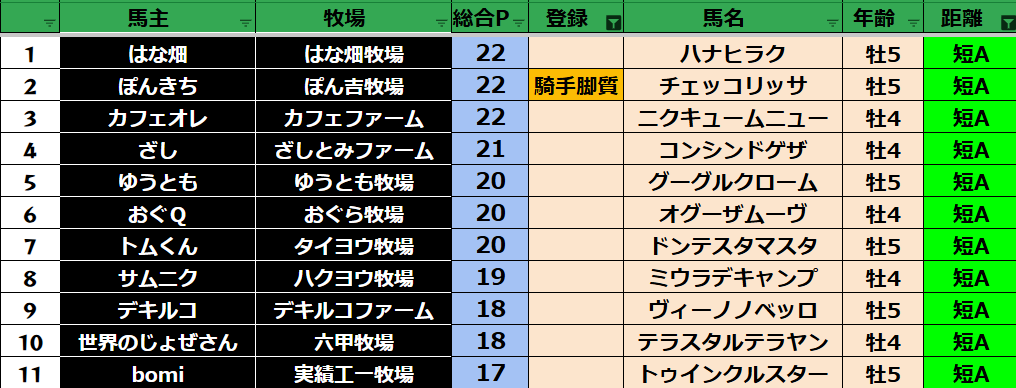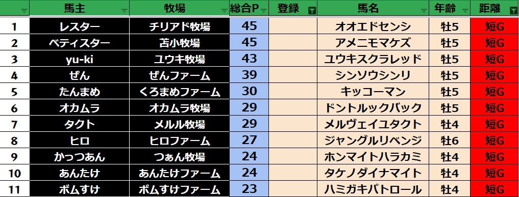 短距離:33頭