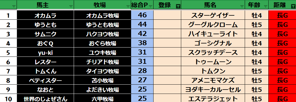 参加馬主:34名