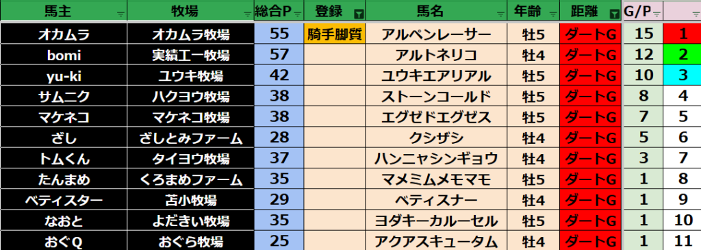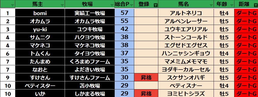【ダートランキング】