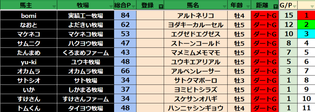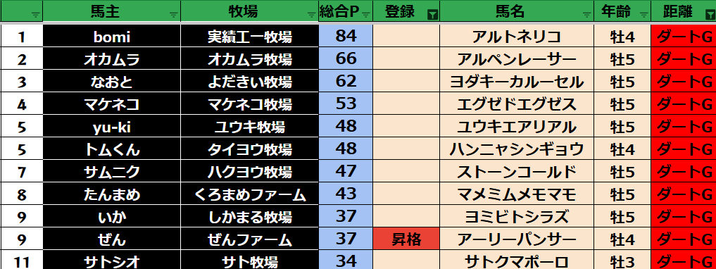 【ダートランキング】