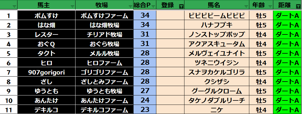 ダビスタ 【ダビスタSwitch】suke3BC 4月4週結果発表!月間ランキング発表! 皆さん4月もありがとうございました! 4月4週の結果と月間ランキングを 発表致します! 【ダート結果】 【ダートクラス】 【長距離結果】 【...