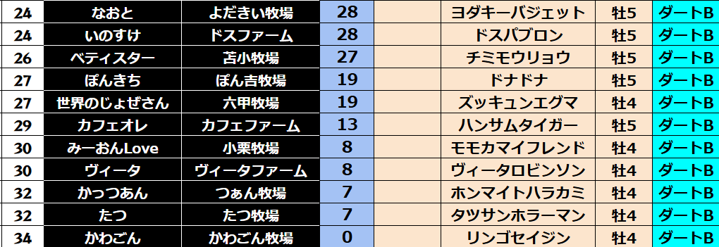 ダビスタ 【ダビスタSwitch】suke3BC season5!! 3月2週目 結果発表!! さぁ先週の結果の方まいります! 【ダート結果】 【ダートランキング】 【短距離結果】 【短距離ランキング】 【中距離結果】 【中距離ランキ...