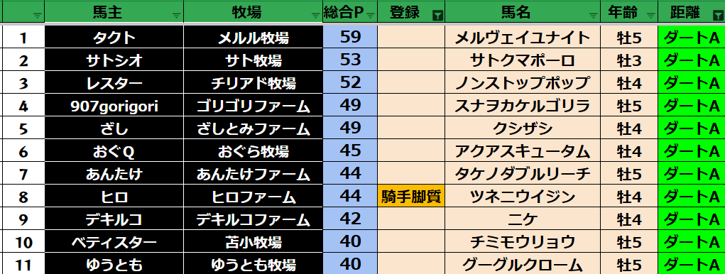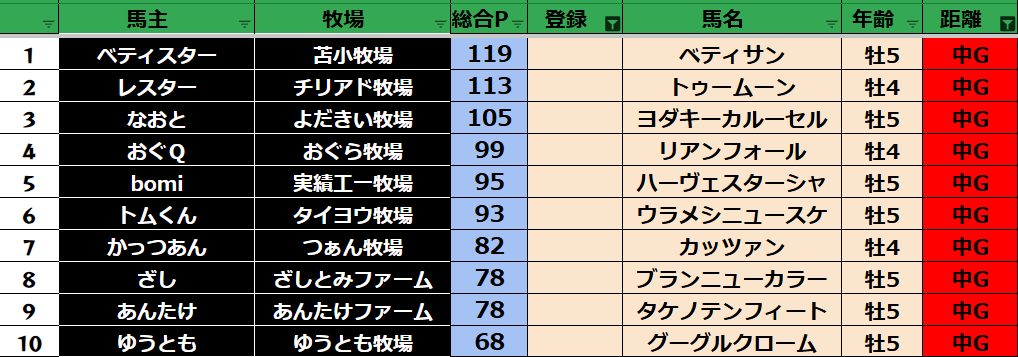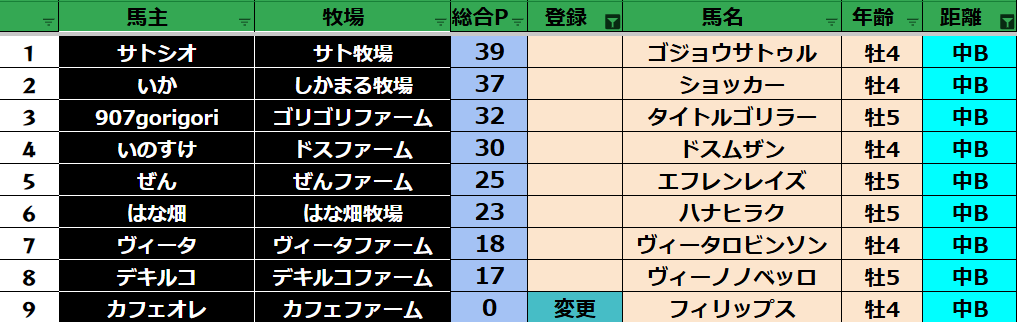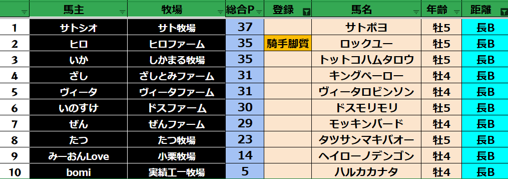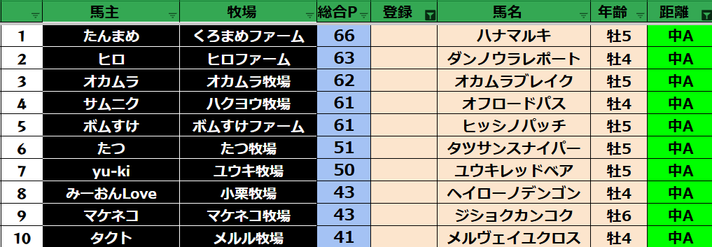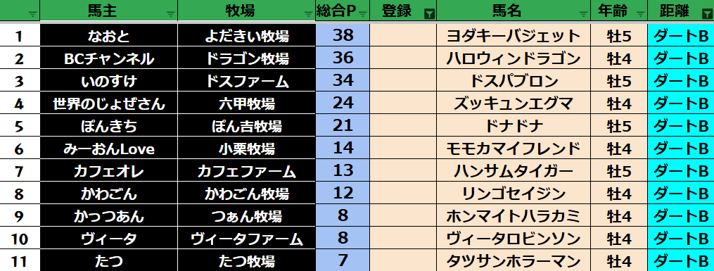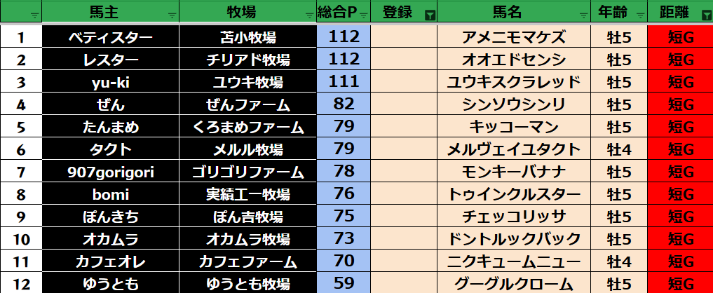ゲーム ダビスタ 【ダビスタSwitch】suke3BC season5 3月4週目 クラス振り分け確定! 2025年3月28日 2025年3月28日 Facebook postはてブLINEPocketFeedly 3月ラストになります! 参加馬主:35名 全登録馬:127頭 ダート:34頭 短距離:34頭 中距離:29頭 長距離:30頭 Contents 【ダート】 【短距離】 【中距離】 【長距離】 Facebook postはてブLINEPocketFeedly