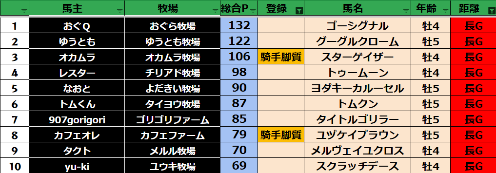 ダビスタ 【ダビスタSwitch】suke3BC season2 9月2週目 クラス振り分け確定!改訂版 9月1週からポイントの計算が間違っていました。 クラス・馬主ランクに多少の変動があるかもしれません。 大変申し訳ありませんでした! 【9月2...