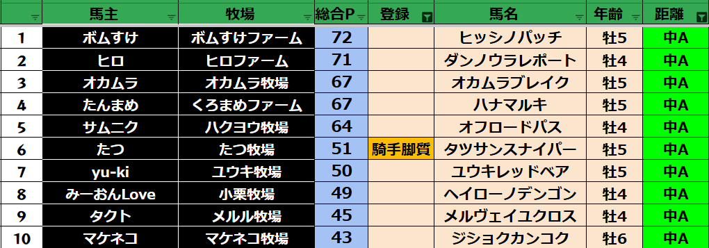中距離:30頭