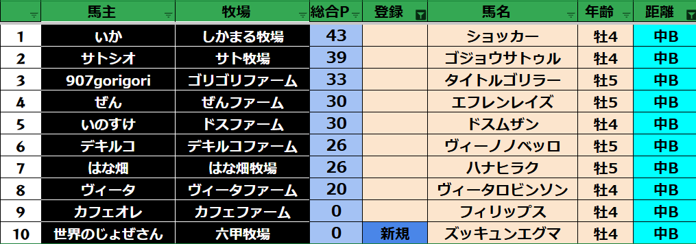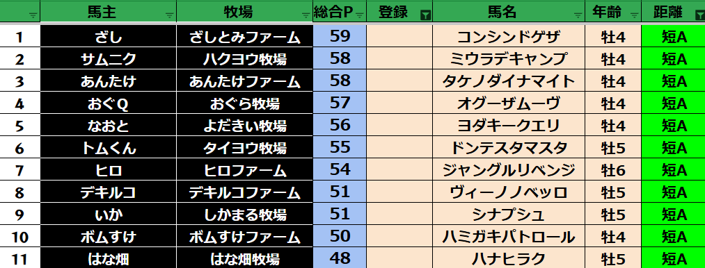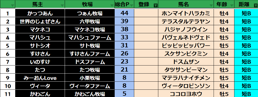 短距離:34頭