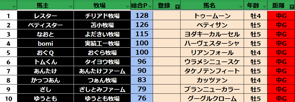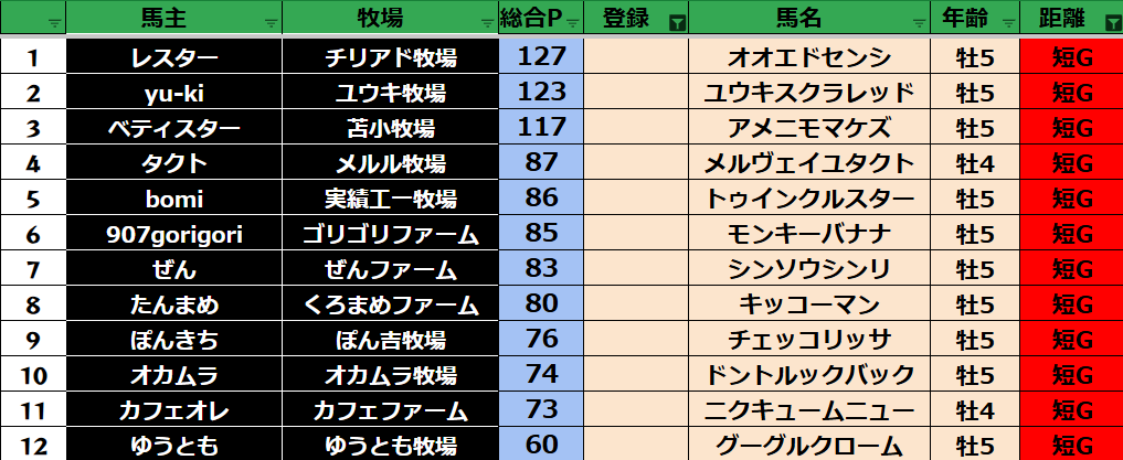 全登録馬:128頭
