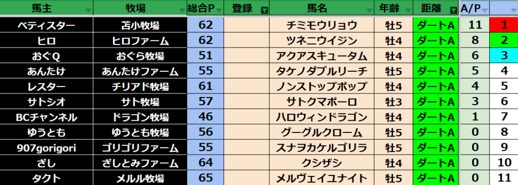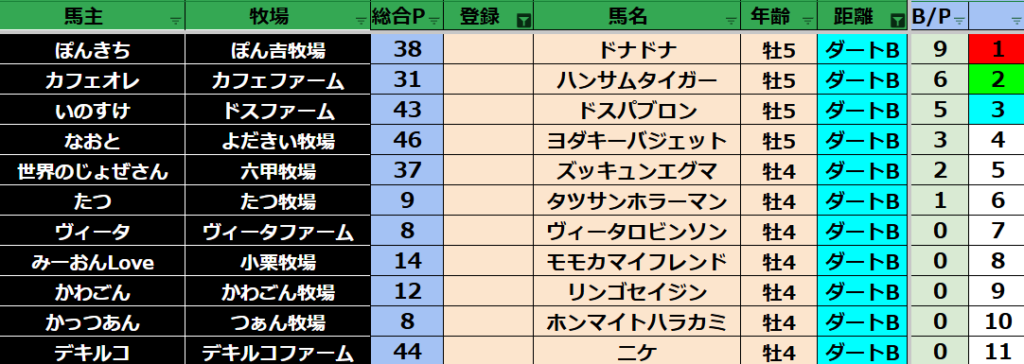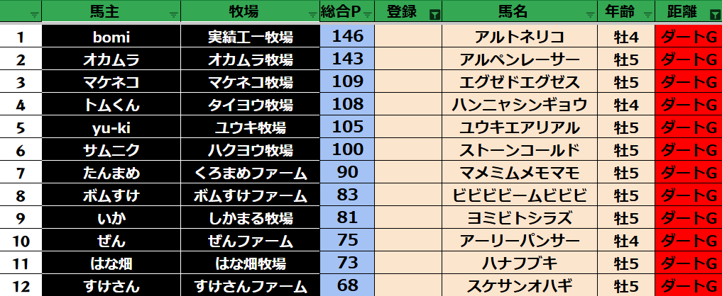 【ダートランキング】