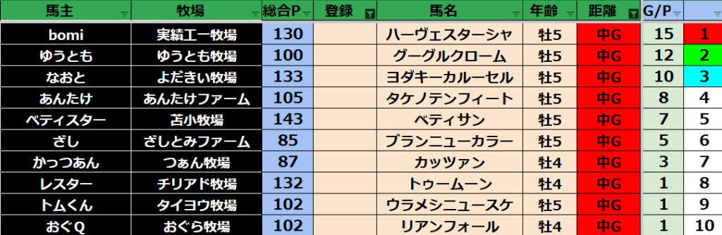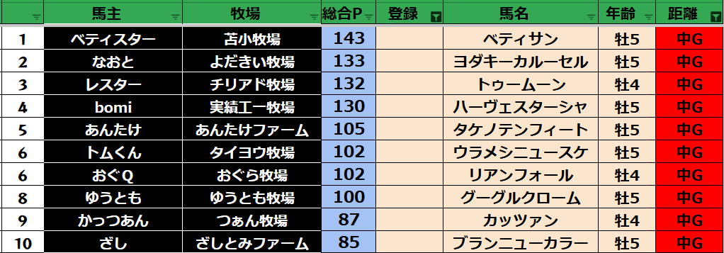 【中距離ランキング】