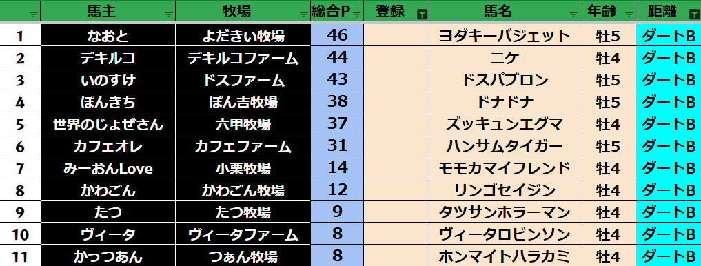 ダビスタ 【ダビスタSwitch】suke3BC season5!! 4月3週目 結果発表!! 先週の結果の方まいります! 【ダート結果】 【ダートランキング】 【短距離結果】 【短距離ランキング】 【中距離結果】 【中距離ランキン...