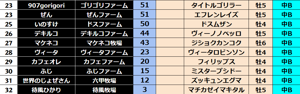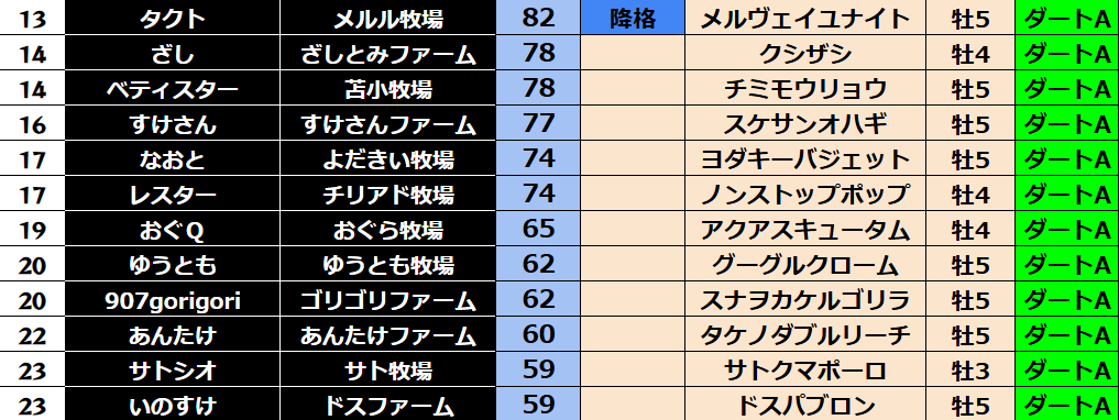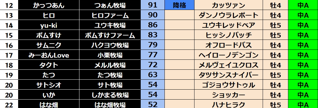 ダビスタ 【ダビスタSwitch】suke3BC season3 6月1週目 クラス振り分け確定! さて今週からは6月BCスタート 雨でジメジメで気分↓↓気味ですが 張り切っていきましょう! 【6月1週目】 参加馬主:69名 全登録馬:2...