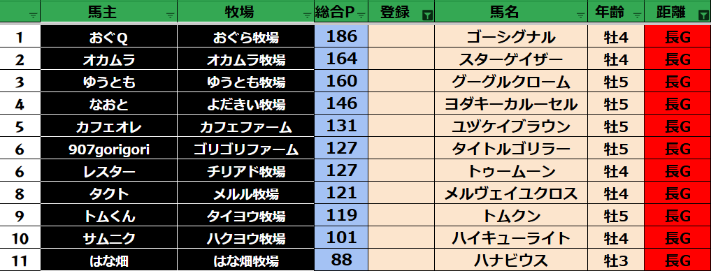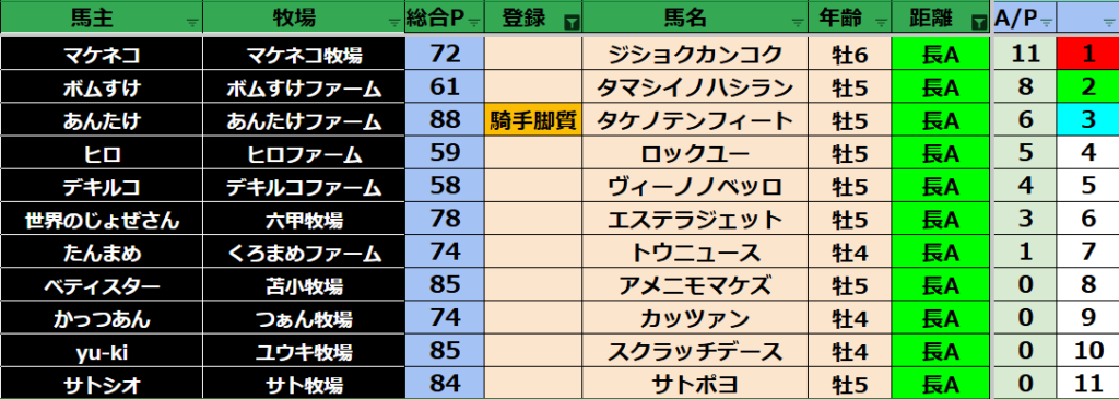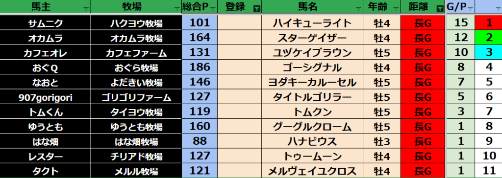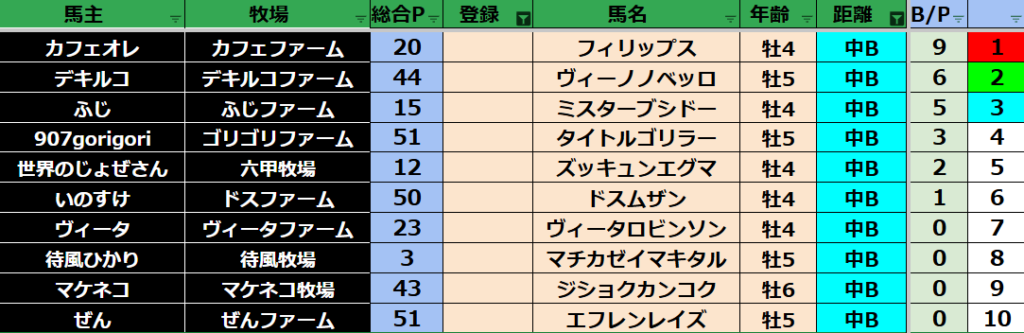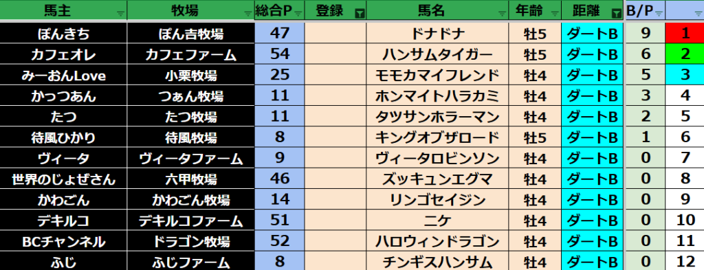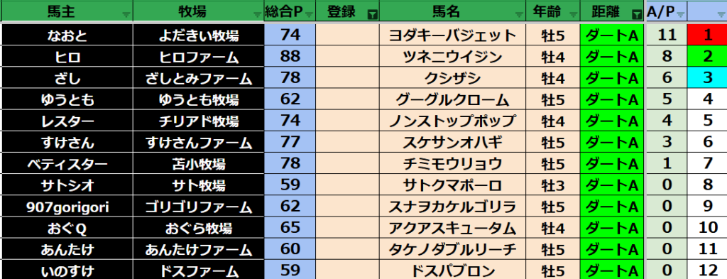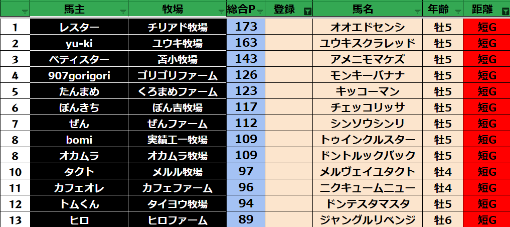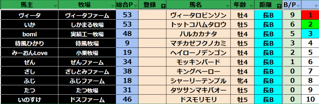 ゲーム ダビスタ 【ダビスタSwitch】suke3BC season5!! 5月2週目 結果発表!! 2025年5月19日 2025年5月19日 Facebook postはてブLINEPocketFeedly 先週の結果の方まいります! Contents 【ダート結果】 【ダートランキング】 【短距離結果】 【短距離ランキング】 【中距離結果】 【中距離ランキング】 【長距離結果】 【長距離ランキング】 【馬主総合ランキング】 Facebook postはてブLINEPocketFeedly
