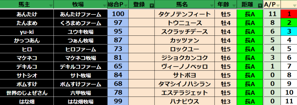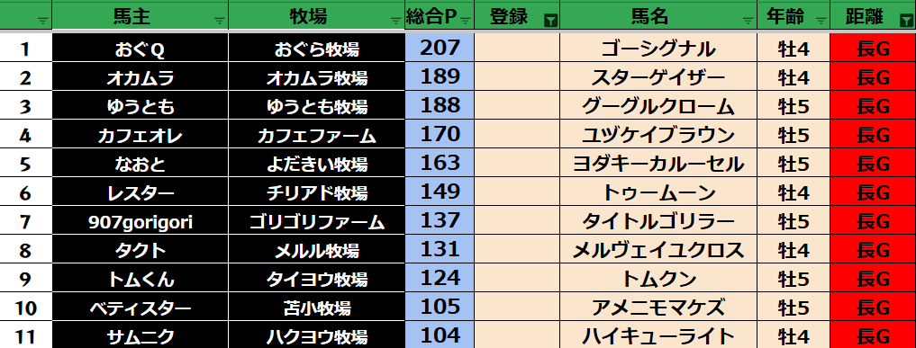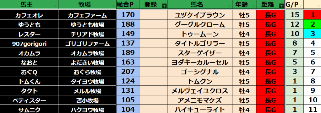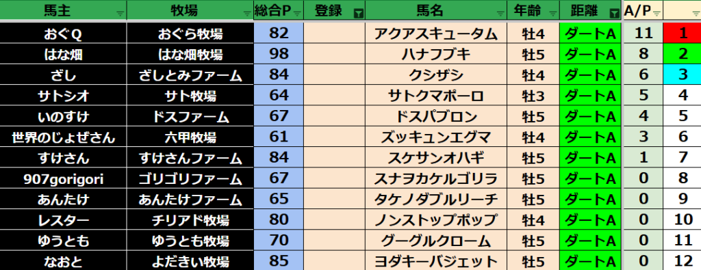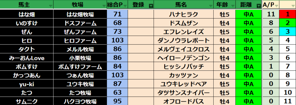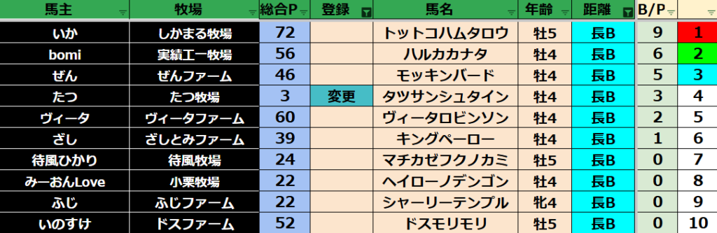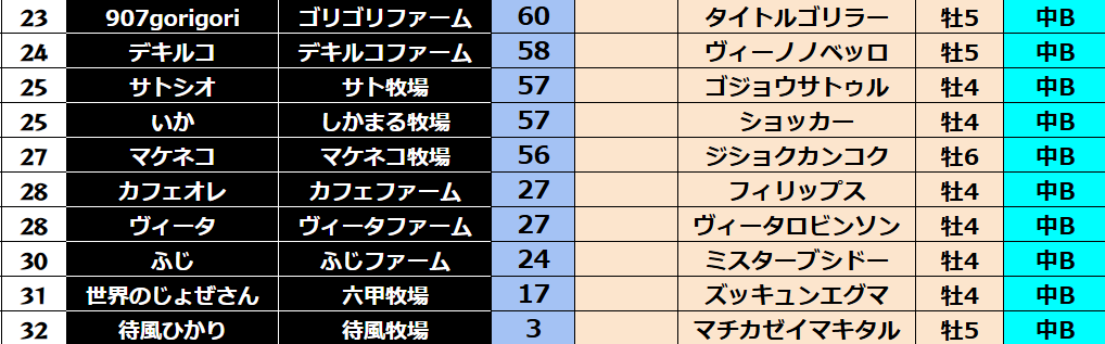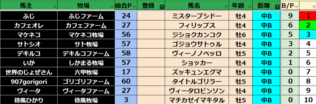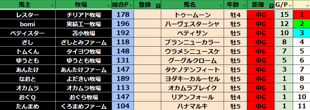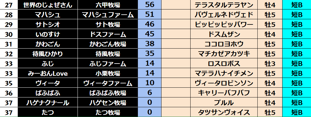 ゲーム ダビスタ 【ダビスタSwitch】suke3BC season5!! 6月1週目 結果発表!! 2025年6月7日 2025年6月7日 Facebook postはてブLINEPocketFeedly 先週の結果の方まいります! Contents 【ダート結果】 【ダートランキング】 【短距離結果】 【短距離ランキング】 【中距離結果】 【中距離ランキング】 【長距離結果】 【長距離ランキング】 【馬主総合ランキング】 Facebook postはてブLINEPocketFeedly