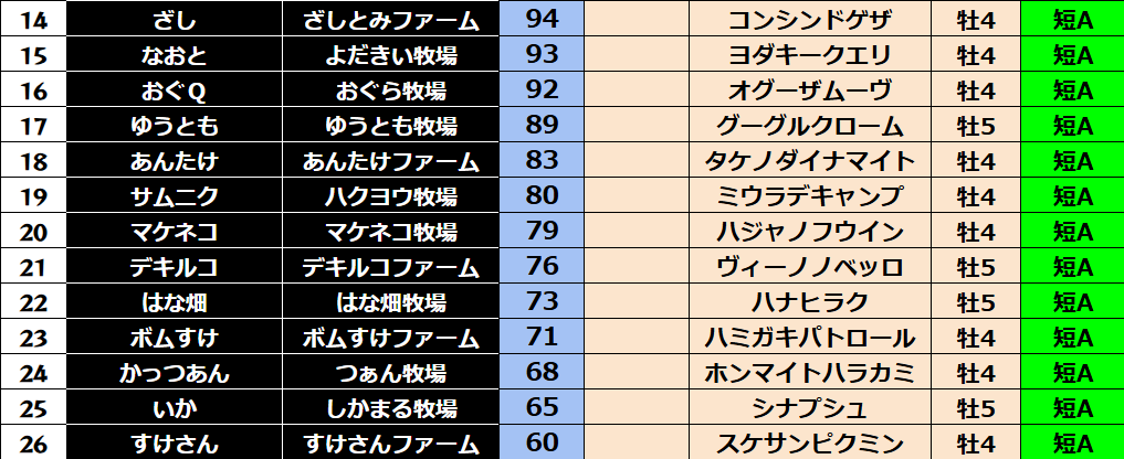 ダビスタ 【ダビスタSwitch】suke3BC season2 9月1週目結果発表! 今週もご視聴ありがとうございました! それでは9月1週目の結果発表です! 【短距離結果】 【短距離ランキング】 【中距離結果】 【...